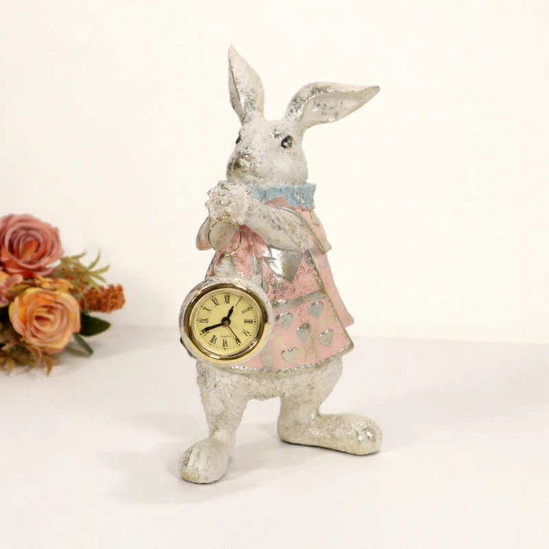 ワンダーランド ラビットクロック ピンクアンティーク風 うさぎ 置き時計 時計 オブジェ 卓上時計 姫系 シャビー レトロ ロマンティック インテリア 雑貨 ギフト プレゼントRE11584