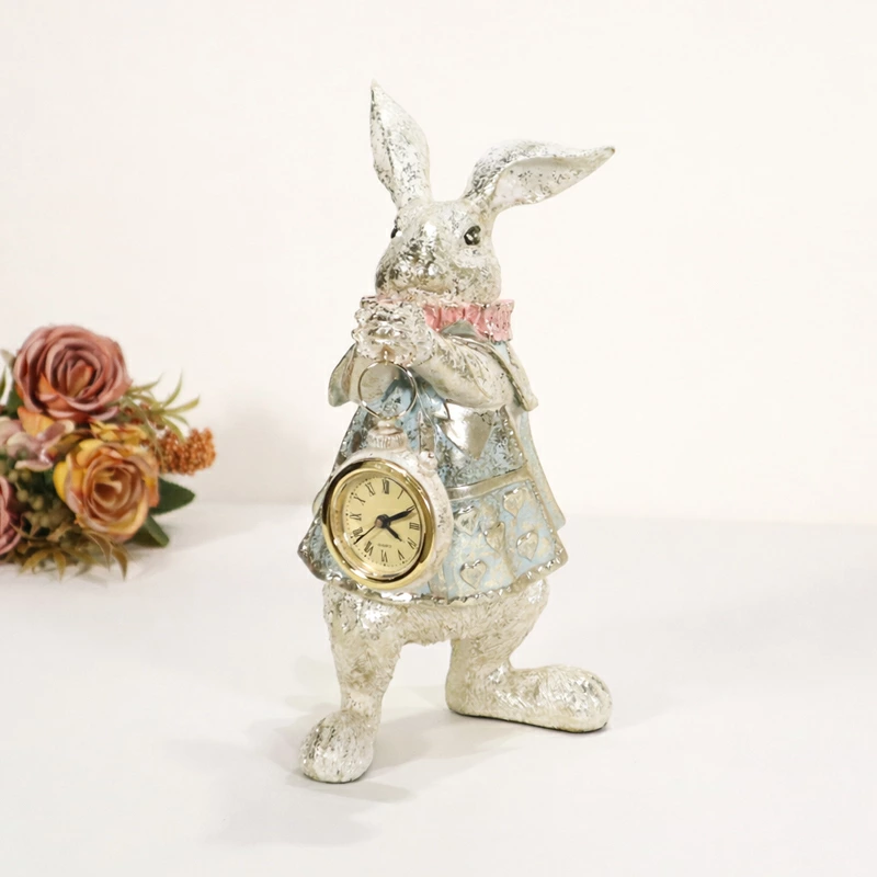 ワンダーランド ラビットクロック ブルーアンティーク風 うさぎ 置き時計 時計 オブジェ 卓上時計 姫系 シャビー レトロ ロマンティック インテリア 雑貨 ギフト プレゼントRE11583