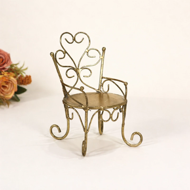 シャビーゴールド メタルチェア置物 アンティーク風 アイアン雑貨 姫系 フレンチ ディスプレイ ショップ オブジェ 撮影小物 インテリア雑貨RE11572