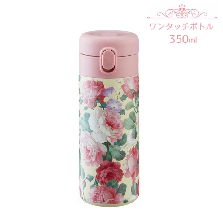 ワンタッチボトル 350ml プリンスローズエンボス加工 ローズ バラ コンパクト ステンレスボトル 保温 保冷 軽量 水筒 片手開閉 おしゃれ かわいい 花柄 ギフトRE23141