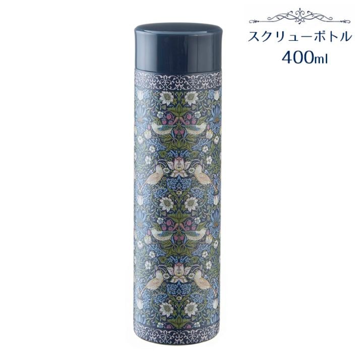 スクリューボトル 400ml バード&ストロベリーエンボス加工 モリス柄 ステンレスボトル 保温 保冷 軽量 水筒 大容量 おしゃれ 北欧風 ギフトRE23146