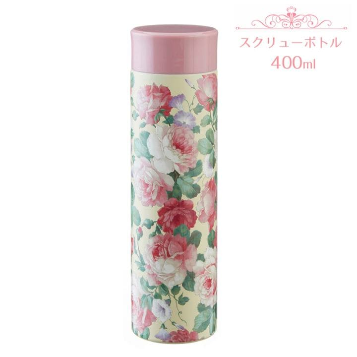 スクリューボトル 400ml プリンスローズエンボス加工 ローズ バラ ステンレスボトル 保温 保冷 軽量 水筒 大容量 おしゃれ かわいい ギフトRE23147