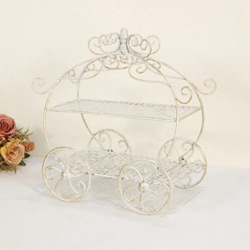 馬車モチーフ ディスプレイスタンド アイボリーアイアン 2段 ケーキスタンド アフタヌーンティー デザートスタンド 撮影小物 姫系 クラシック インテリア雑貨RE11528