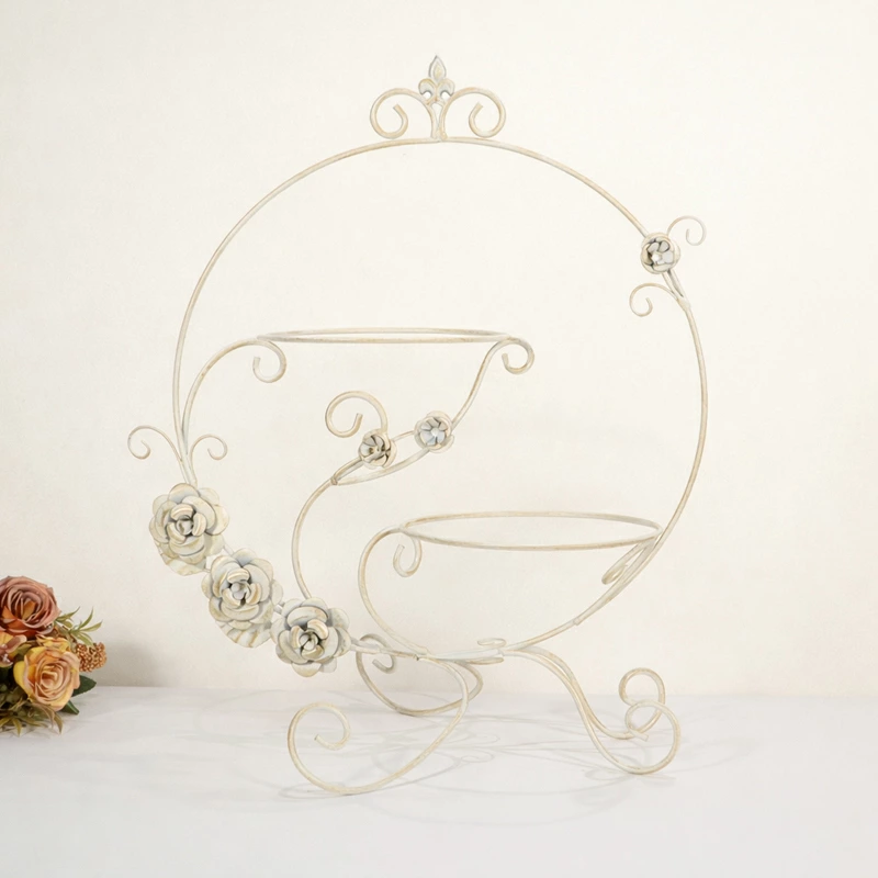 ローズモチーフ アイアンプレートスタンド アイボリー姫系 ディスプレイスタンド お皿立て おしゃれ かわいい レシピスタンド 写真撮影 小物撮影 ショップ ディスプレイ什器RE11524