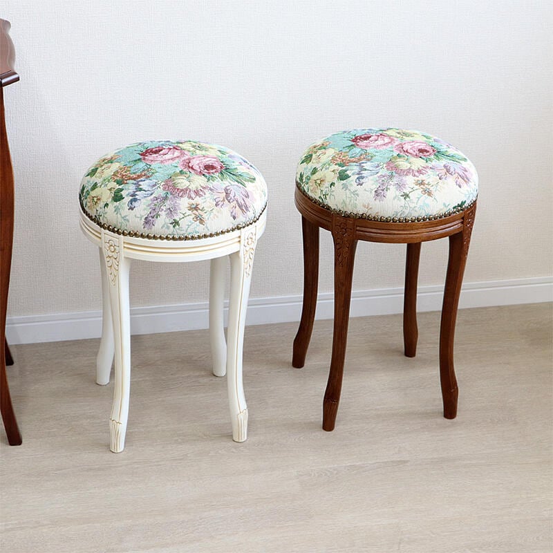 イタリア製 ラウンドスツール ゴブランフラワー 2色より選択