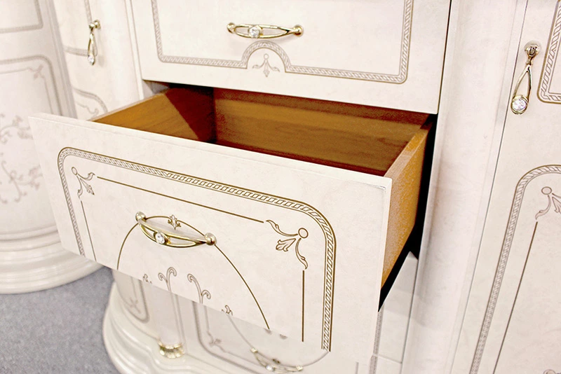 | 美しい曲面のシルエットと、ユリの花をイメージした大胆なモチーフが印象的な【フローレンス アイボリーカラーコレクション】 落ち着いた気品のある優雅さは、クラシックファン以外からも人気のサルタレッリモビリを代表するコレクションです。 |
