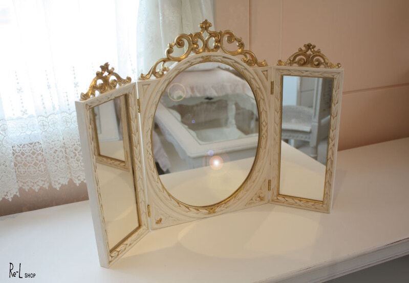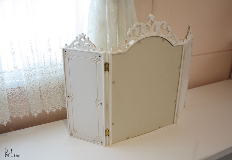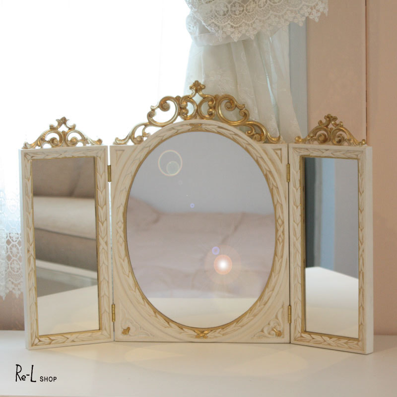| イタリア製 三面鏡 アンティークホワイト×ゴールド | |