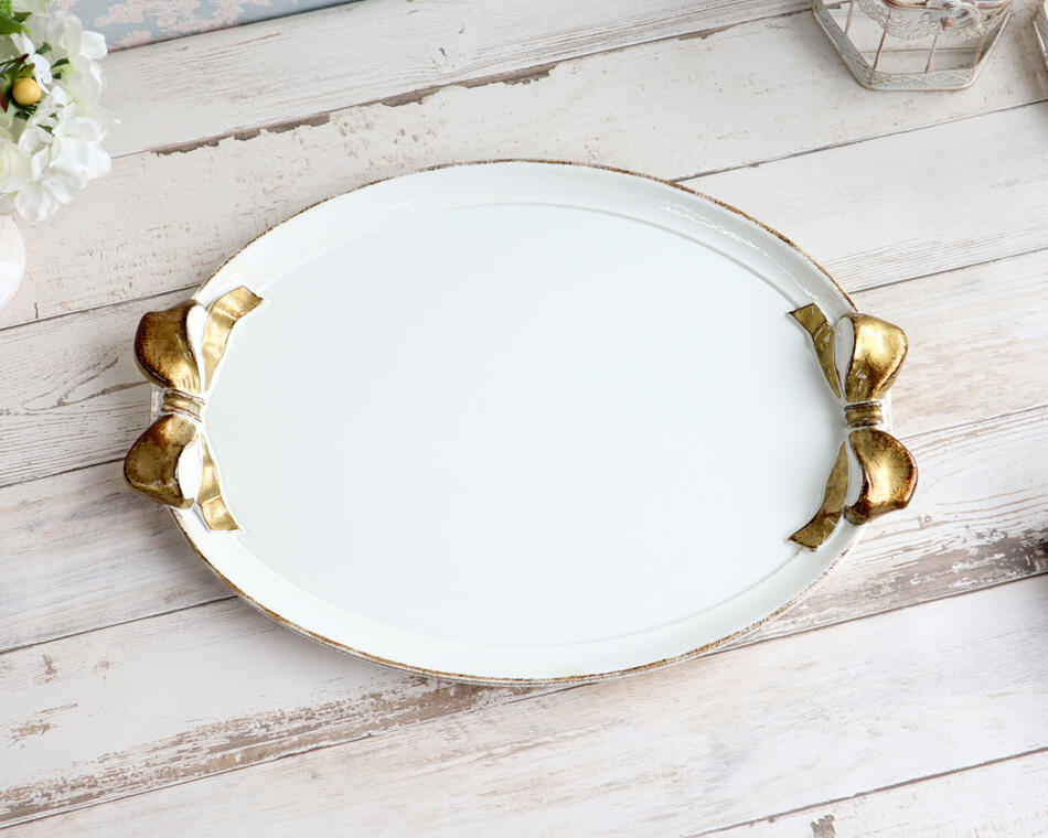 | ソルディ オーバルトレイ ホワイト×ゴールド 43×31cm | |
