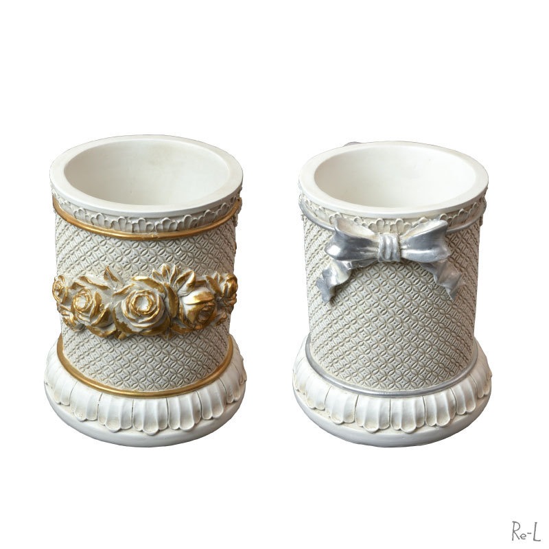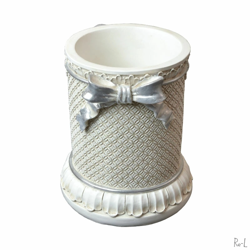 | エレガントなシルバーリボンのペンスタンド。 リボンの装飾が施されたお洒落なデザインは、インテリアのアクセントとしても活躍してくれます。 |