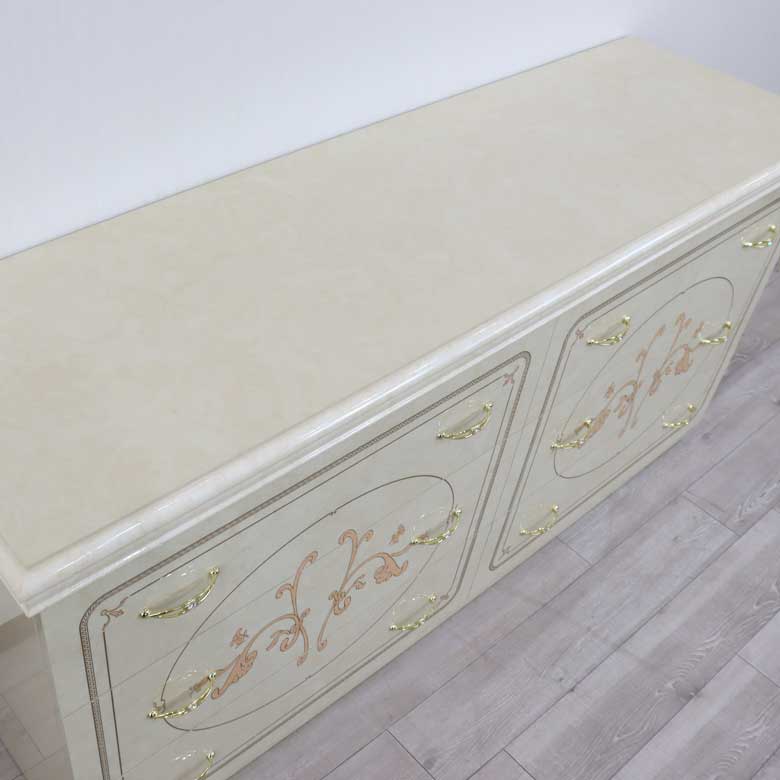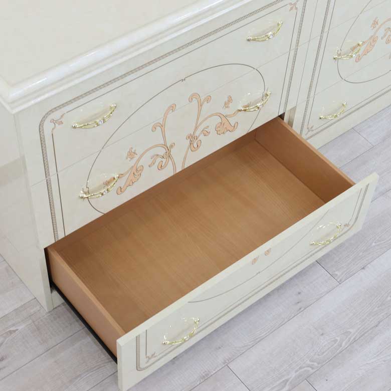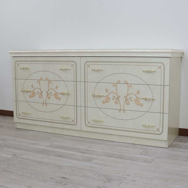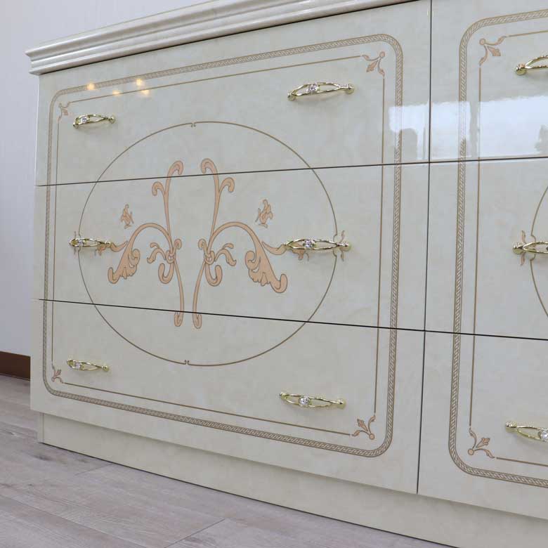 | 美しい曲面のシルエットと、ユリの花をイメージした大胆なモチーフが印象的な【フローレンス アイボリーカラーコレクション】 落ち着いた気品のある優雅さは、クラシックファン以外からも人気のサルタレッリモビリを代表するコレクションです。 |