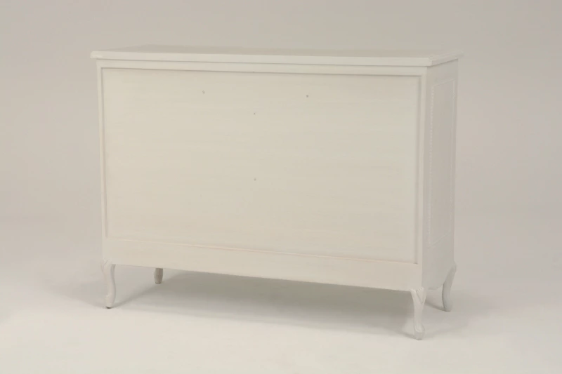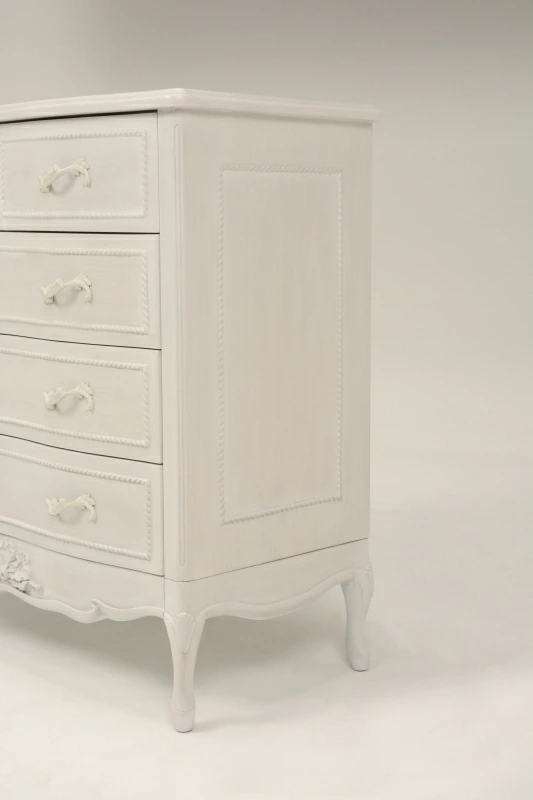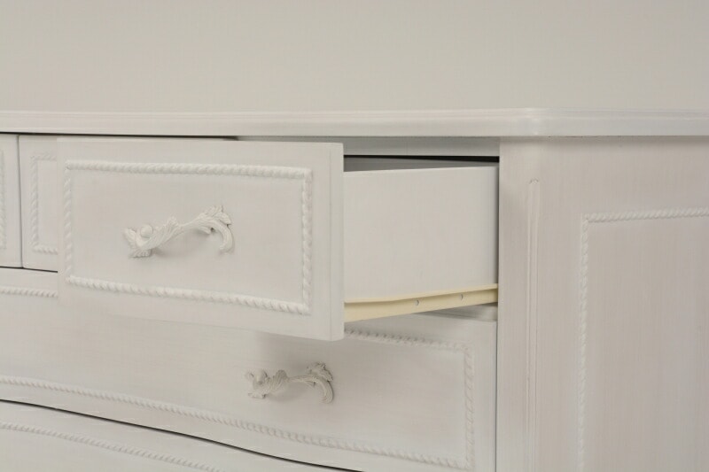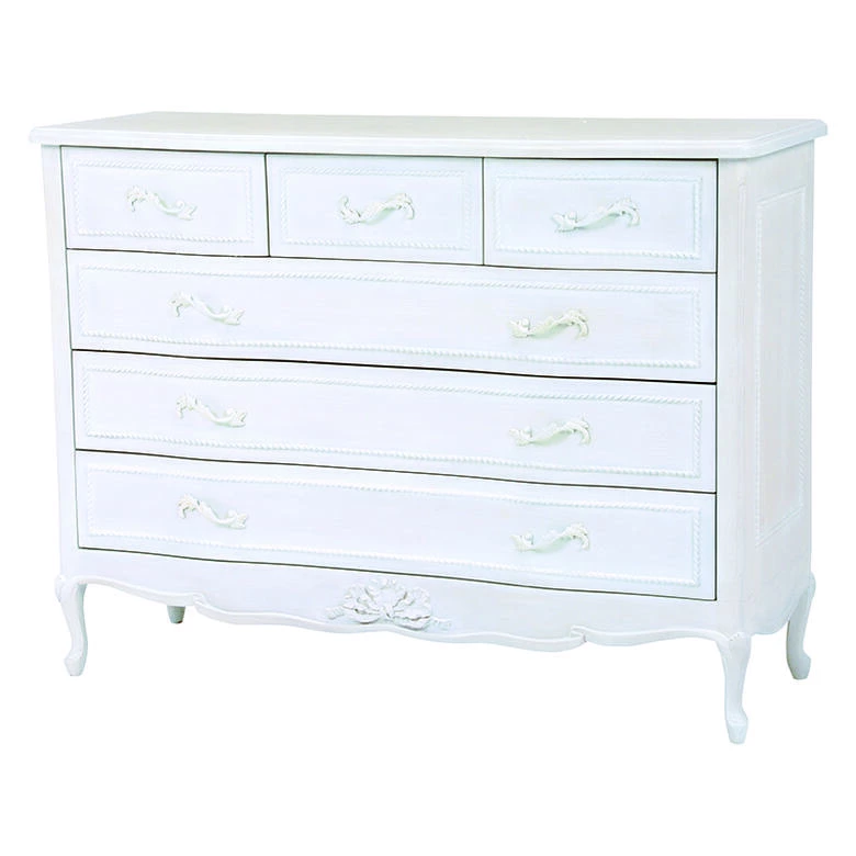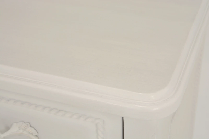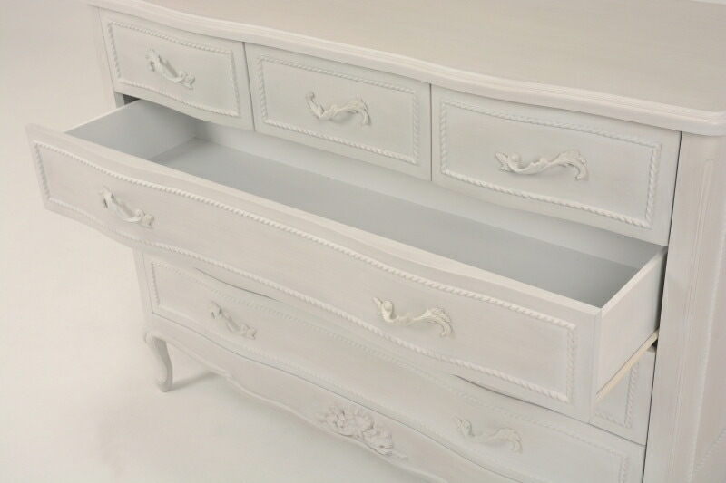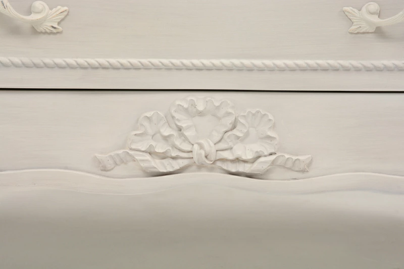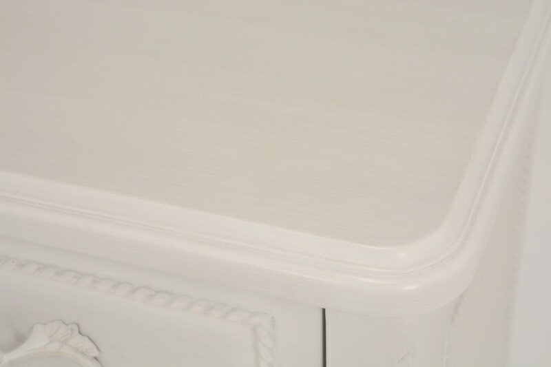 | リボンモチーフの彫刻と猫脚が特徴の「ハンプトン」シリーズ。 高級木材のマボガニーにアンティーク加工が施されており、グレージュ系のシャビーでお洒落な雰囲気に仕上げられています。 |