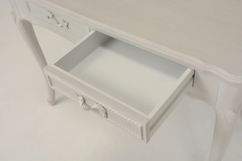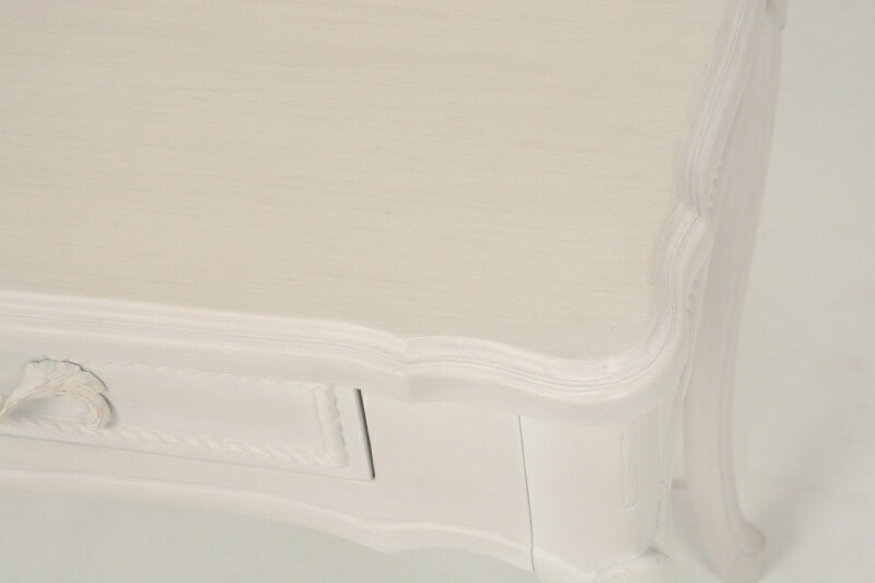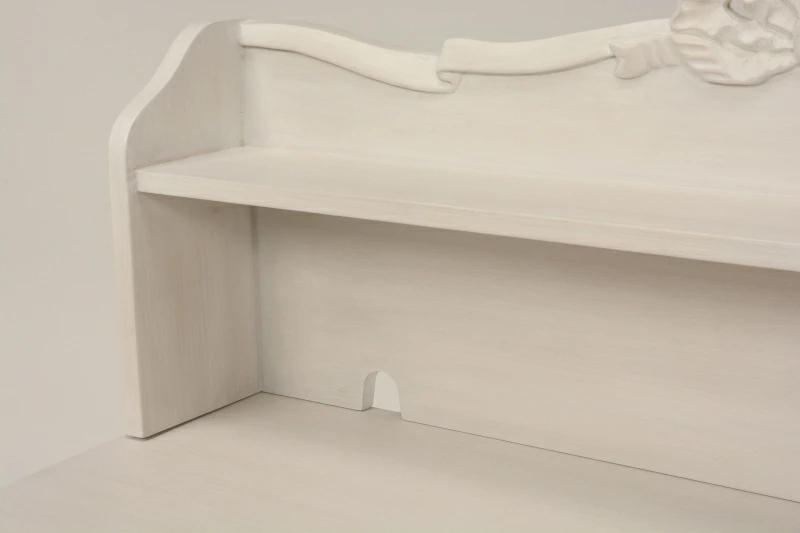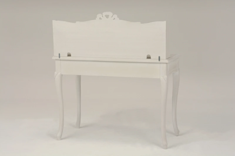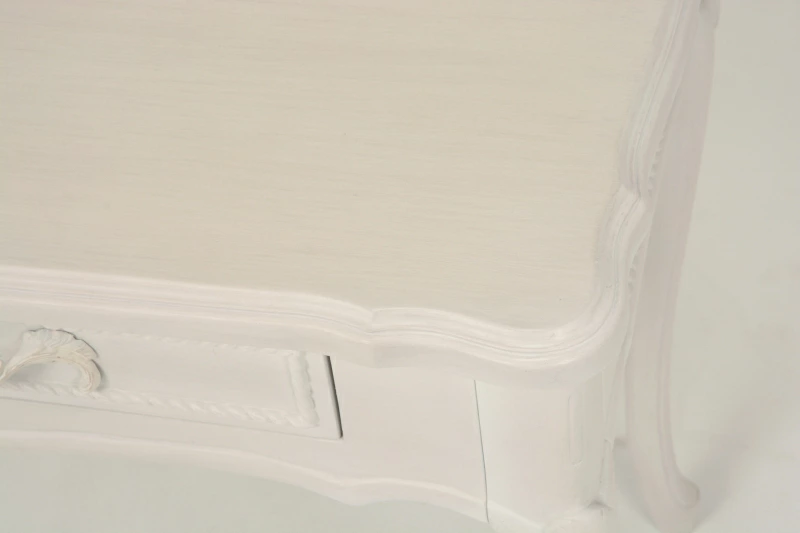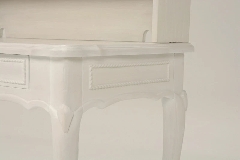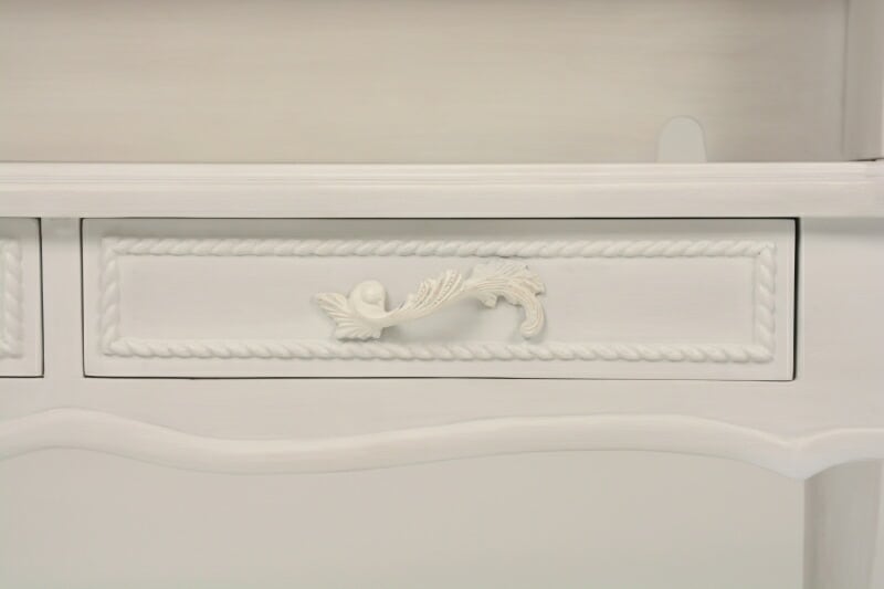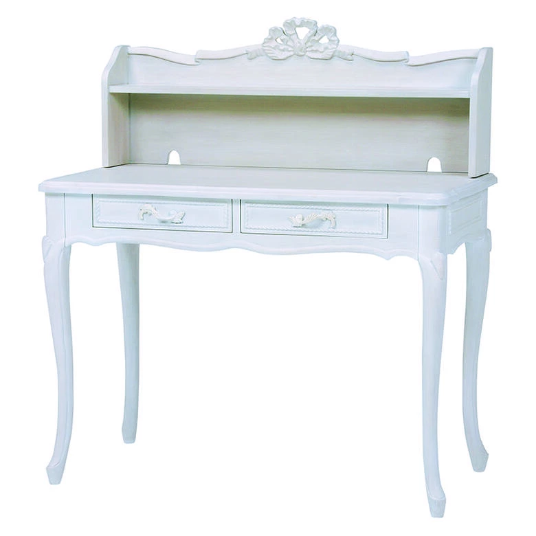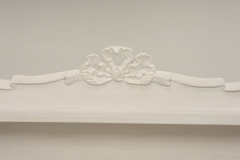 | リボンモチーフの彫刻と猫脚が特徴の「ハンプトン」シリーズ。 高級木材のマボガニーにアンティーク加工が施されており、グレージュ系のシャビーでお洒落な雰囲気に仕上げられています。 |