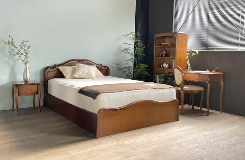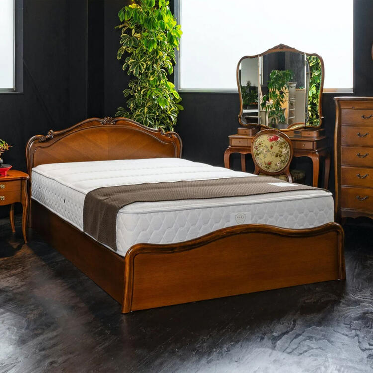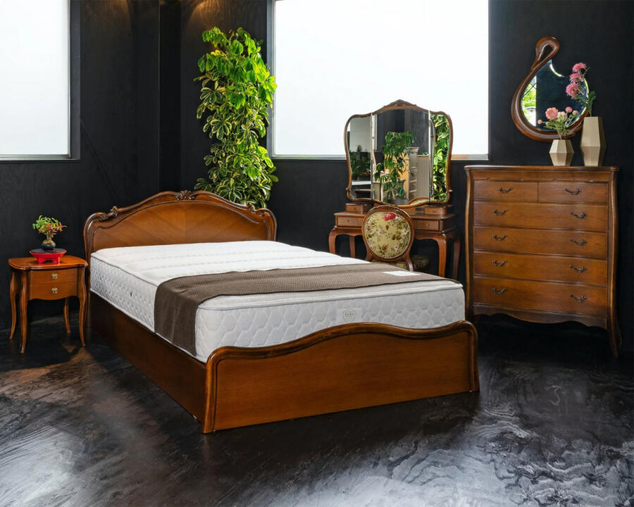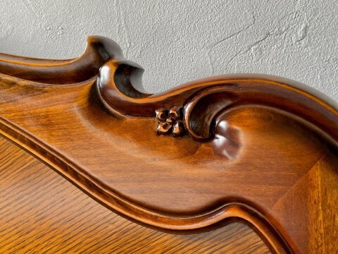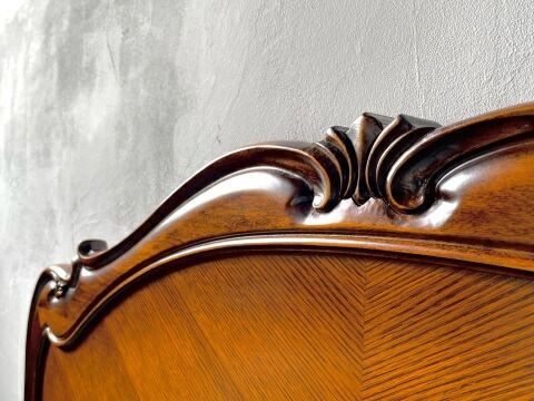 | 国産高級家具【Continue】カンティーニュシリーズ。 優雅な曲線美と大胆な彫刻が一際目立つベッドフレームです。 彫刻は繊細なラインを熟練職人の手によって丁寧に仕上げられており、こだわりの技の1つ1つでカンティーニュのエレガンスな表情は造られています。 カラーは4色、すのこは2種類からご選択いただけます。 |