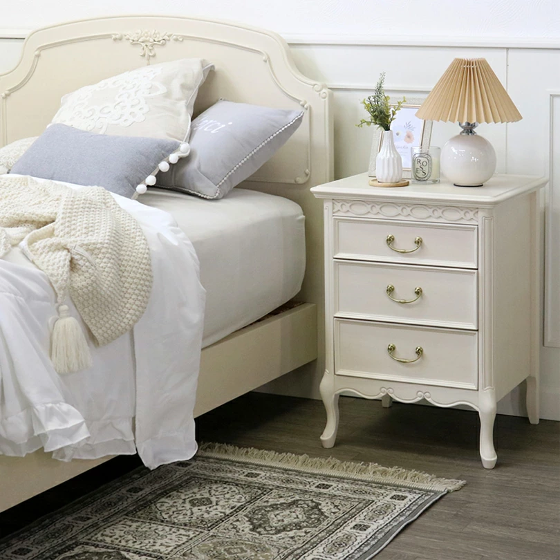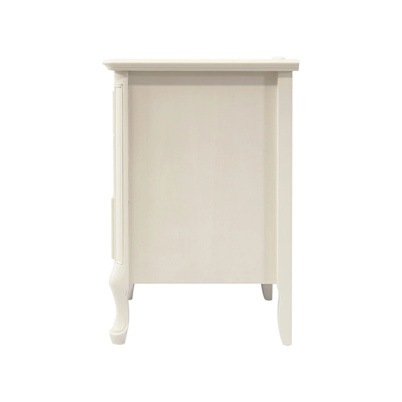 | ロココ調フレンチカントリー家具『フルール』シリーズ。 丸みを帯びた優美なラインと、エレガンスの代名詞ともいえるカブリオールレッグ(猫脚)が特徴です。 木肌が薄っすら残る上品な色合いで仕上げられており、フェミニン・ガーリー・ロマンティック等のエレガンススタイルや、ロココ調コーディネートなど、優しい気分になれるようなインテリア空間を作り出してくれます。 |