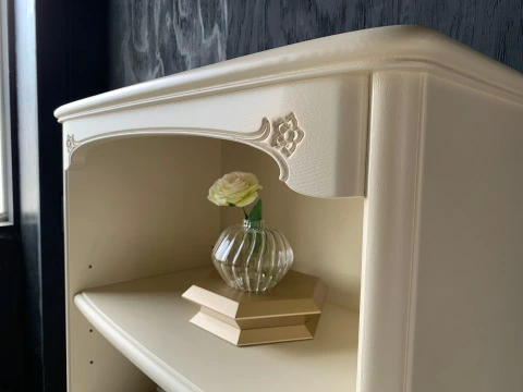 | 国産高級家具【Continue】カンティーニュシリーズのブックケース。 可愛い猫脚がとても印象的で、彫刻はデザイナーが描く繊細なラインを職人が丁寧に彫り込んで表情を造り上げています。 書棚として本を置いたり、飾り棚にしたり、色々な用途にお使いいただけます。 |