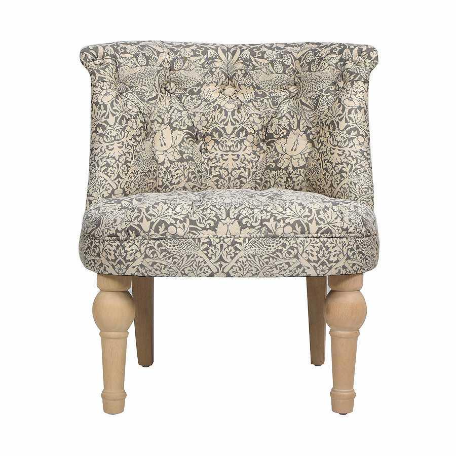 | ジェニファーテイラー「Strawberry Thief」コレクションのラムズゲイトチェア。 上品なウィリアムモリスデザインの生地と、シックなカラーが魅力です。 馴染みやすいグレーベージュ系の色合いは、お部屋に合わせやすく、インテリア空間を華やかにしてくれます。 |