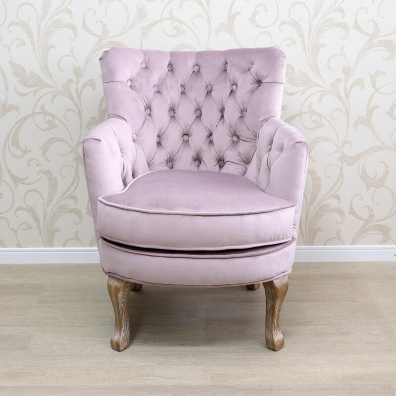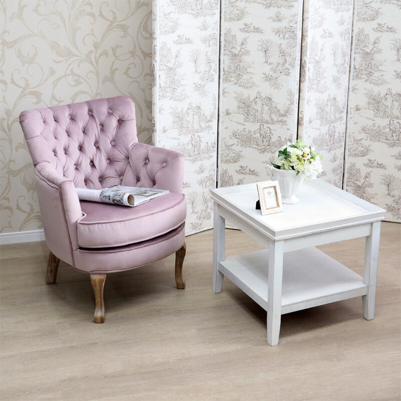 | フレンチスタイルのお洒落な一人掛けソファ。 シャビーシックな雰囲気が特徴で、肌触りのよいベルベット素材も印象的です。 場所を取らないコンパクトなサイズなので、お部屋や寝室など様々なシーンでお使いいただけます。 |