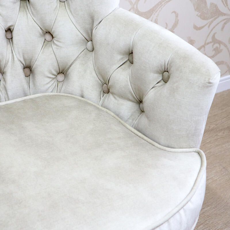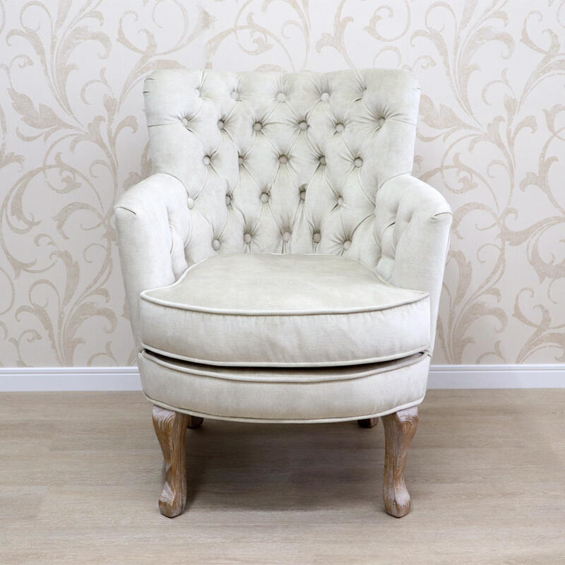 | フレンチスタイルのお洒落な一人掛けソファ。 シャビーシックな雰囲気が特徴で、肌触りのよいベルベット素材も印象的です。 場所を取らないコンパクトなサイズなので、お部屋や寝室など様々なシーンでお使いいただけます。 |