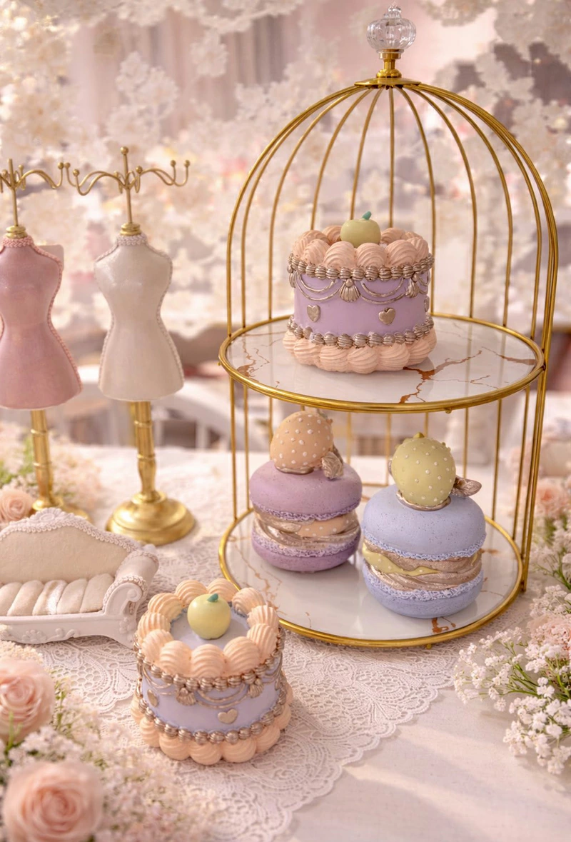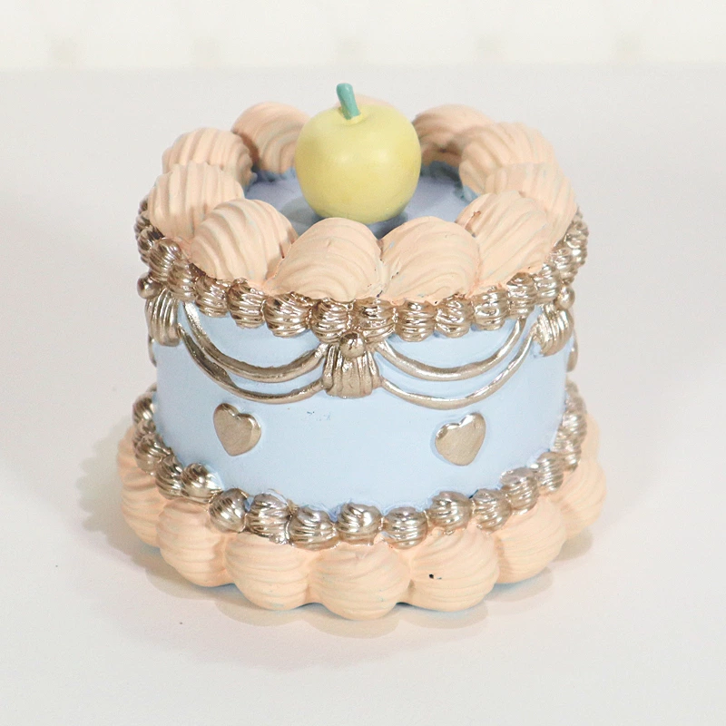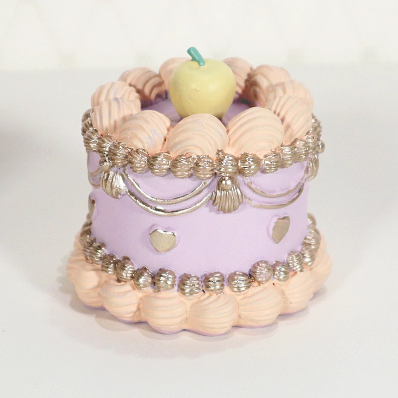 | まるでスイーツのような、ロマンティックなケーキモチーフの置物です。 繊細なクリームデザインやシルバー調の装飾、ハートモチーフが可愛らしく、置くだけで空間を華やかに演出してくれます。 ブルーとパープルの淡いカラーリングは、姫系・フェミニン・フレンチテイストのインテリアとも相性抜群。棚やデスク、ディスプレイスペースのアクセントとしておすすめです。 雑貨の撮影、SNS用の写真、ショップディスプレイなどにも幅広くご使用いただけます。 |
