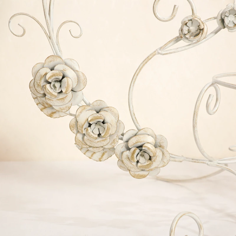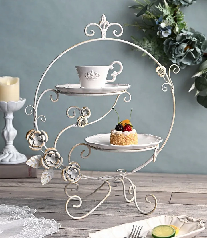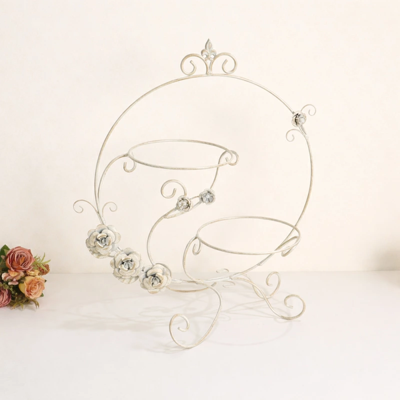 | 優雅な曲線とローズモチーフが目を引く、フレンチシャビーな雰囲気の2段プレートスタンド。 アンティーク調のアイボリーカラーと、繊細なアイアンワークが空間を美しく演出します。 アクセサリーや小物、雑貨を飾ったり、合わせるプレートによって様々なスタイルを楽しめます。 ショップディスプレイや、お部屋のインテリアアクセントとしてもおすすめ。置くだけでエレガントな世界観に引き上げてくれます。 |