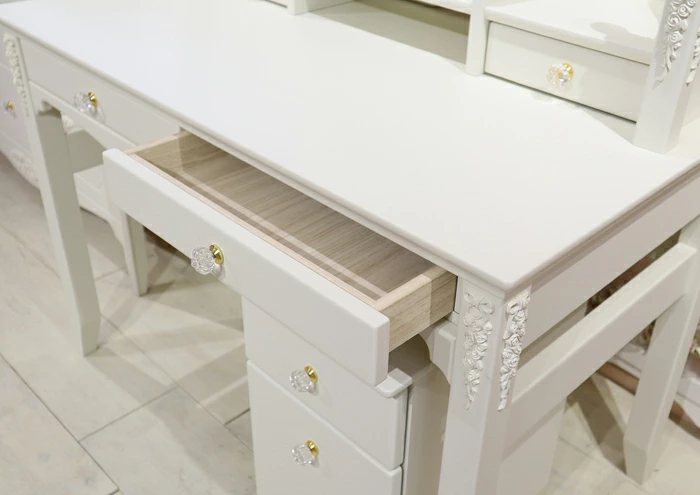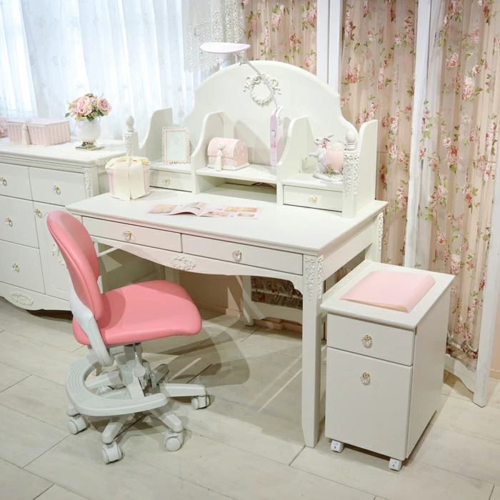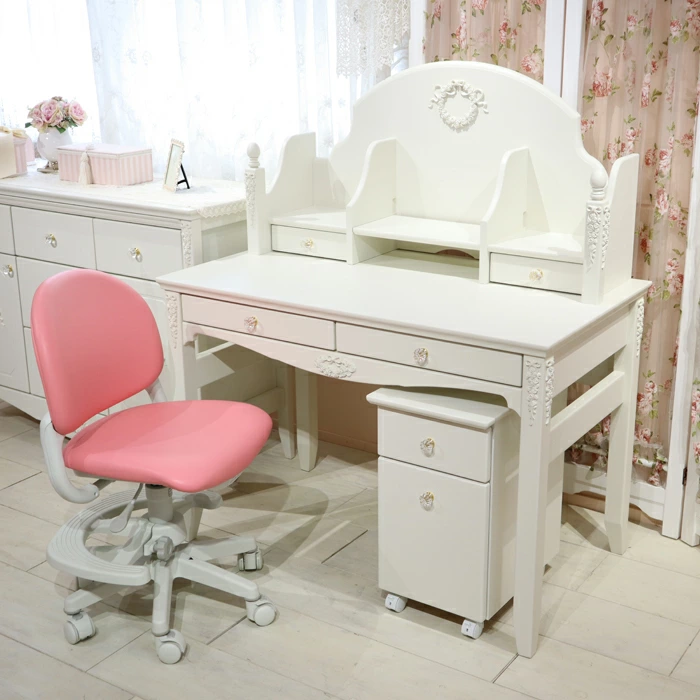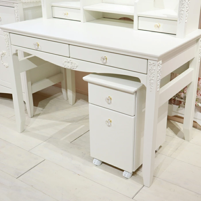 リエルショップ限定の白家具 Celesta(チェレスタ) シリーズ。 ローズモチーフが優雅に映える、学習デスク・ブックスタンド・サイドワゴン・チェアの4点セットです。 引き出し付きデスクとブックスタンドで、学用品をすっきり整理。 キャスター付きサイドワゴンを組み合わせることで、収納力と使いやすさを高めています。 気品を感じさせるホワイトカラーと繊細な装飾、やさしい曲線が調和したエレガントなデザイン。 可愛らしさと落ち着きを兼ね備え、小学生から中高生まで長く使える学習デスクセットです。 ※本商品は、国内の自社工場で一つひとつ丁寧に仕上げるRe-L SHOPオリジナルの受注生産家具です。 塗装から仕上げまで職人が手作業で制作するため、納期はご注文から約2〜4週間ほどお時間をいただいております。 |