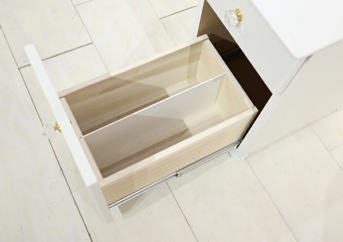 ・ベアリング式スライドレール ・下段引き出しA4サイズ収納可 ・最下段引き出し中央仕切りあり ・ストッパー付きキャスター |