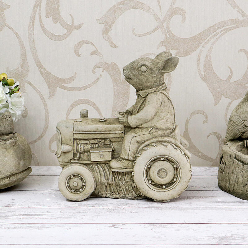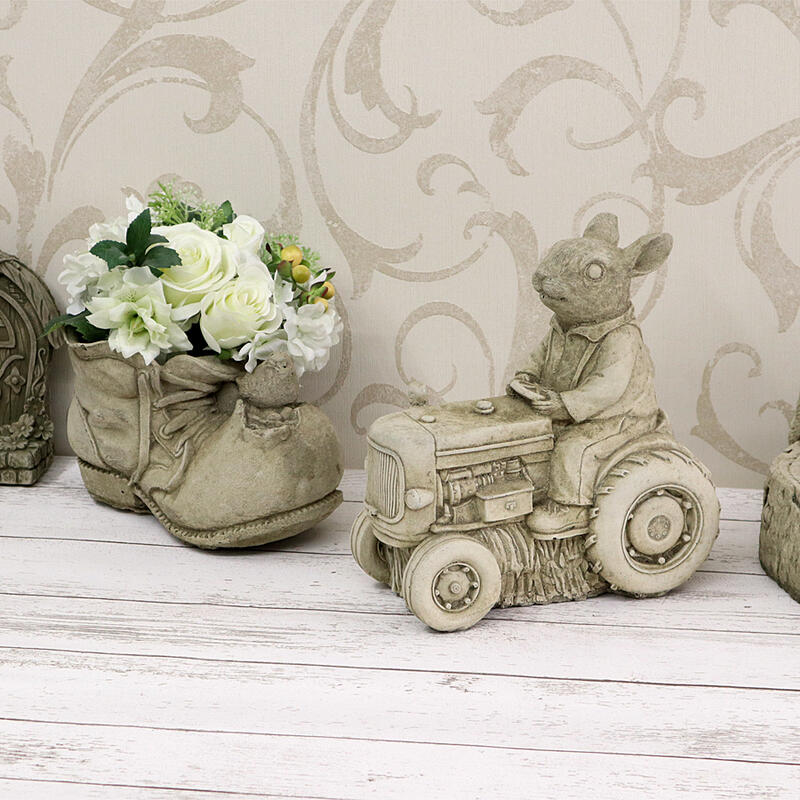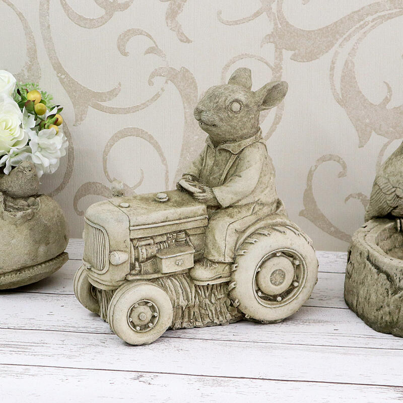 | 英国製のお洒落なガーデンオブジェ。 ストーン製なのでずっしりとした重みがあり、トラクターに乗ったウサギをモチーフにした重厚感のある仕上がりです。 クラシカルで洗練されたデザインは、お庭や玄関の雰囲気を夢のある空間に変えてくれます。 |